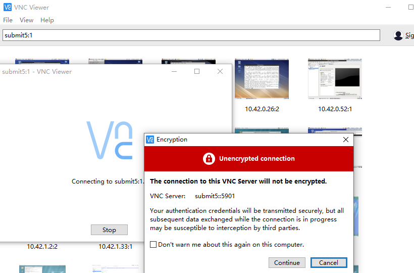 4. 在下载的VNC VIEWER 软件内输入作业节点的IP 地址和端口号 ,输入远程桌面口令
