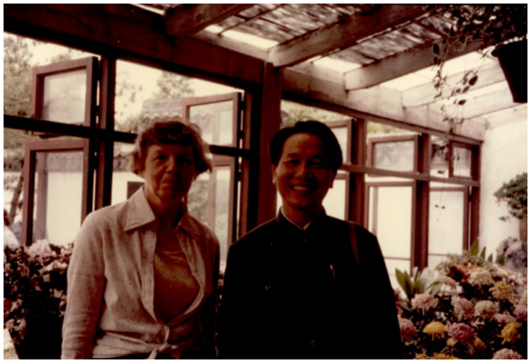 1981年6月,张友尚先生与续约大学Babara Low教授在上海植物园合影。Low是霍奇金教授的学生。