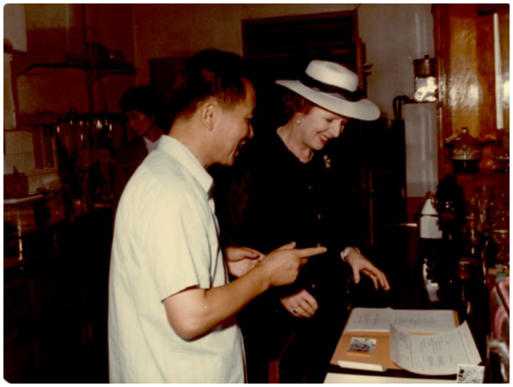 1982年9月,英国首相撒切尔夫人来上海生化所访问时,张友尚先生介绍胰岛素酶促半合成工作。