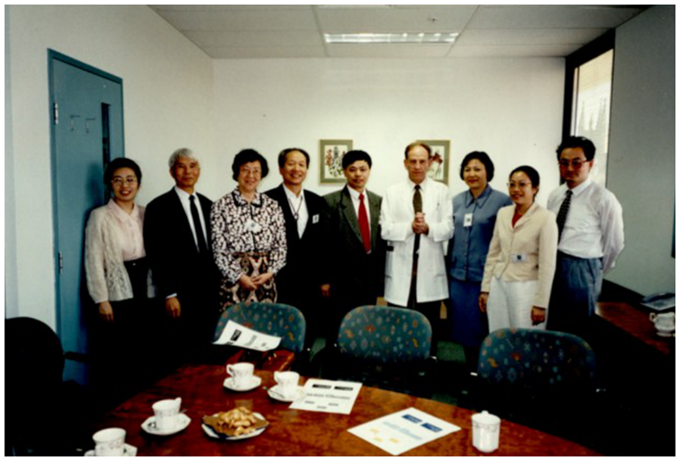 1996年9月,张友尚先生(左四)与李伯良、齐书莹、母锡金等访问澳大利亚时摄于悉尼大学。